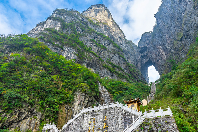 湖南張家界的天門山日前開通全球首條在山中隧道內安裝的手扶梯,總長為897公尺,共12段,可以提升340公尺的高度,總共跨越的長度達692公尺,從天門山洞底直達山頂,單向一小時可輸送3600人,不僅能縮減遊客排隊時間,從山頂到天門洞之間往返也更加快捷。